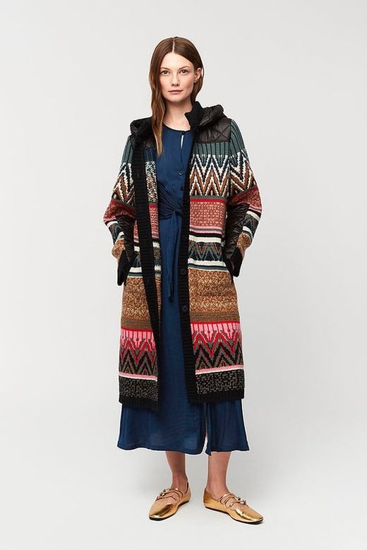 Abrigo de Aldo Martins, Abrigo largo, recto en Jacquard con un estampado geometrico multicolor. Con capucha acolchada en color liso. Color: Multicolor.