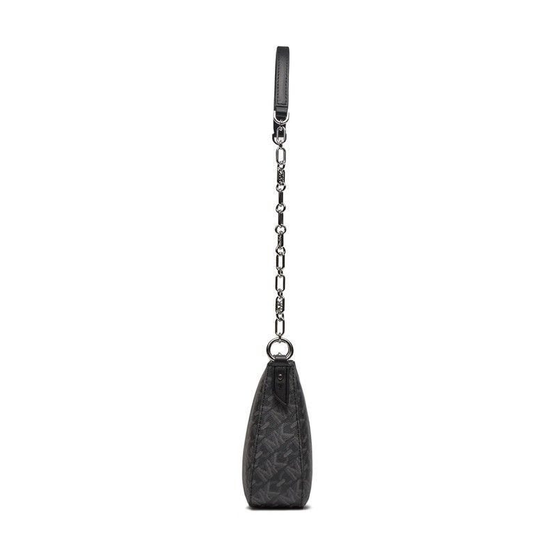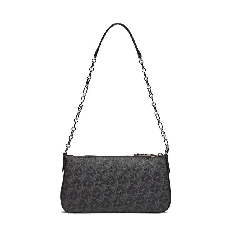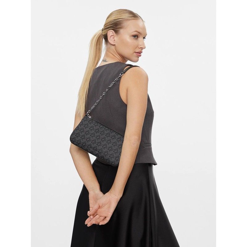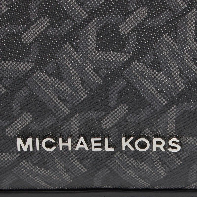 Bandolera Bolso Empire de Michael Kors. Bolso de hombro con monograma de logo impreso estampado y placa de logo en plateado. Cierre en el tope con cremallera. Correa de cadena para el hombro. (Longitud cerca 60 cm). Herrajes de metal plateado pulido. Color: Negro.