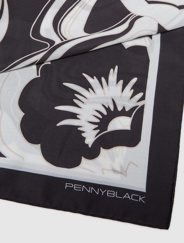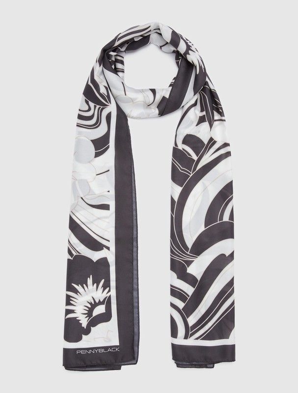 Bufanda de Pennyblack. Larga cruzada en tejido estampado suave y fluido Color: Negro-blanco.