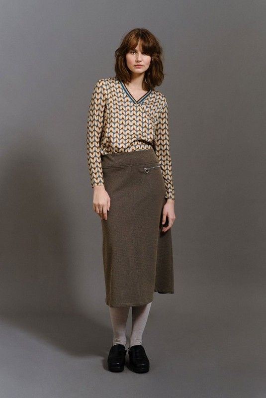 Camiseta de Guitare. De manga larga. Confeccionada con un tejido de punto suave y ligeramente evase. Cuello en pico con tira de tricotosaTejido de punto fluidoColor: Beige-Petroleo.