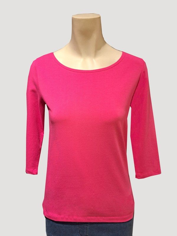 Camiseta de Guitare. Corte recto. Cuello barca. Manga 3/4. Tejido suave y adaptable. Color: Fucsia.