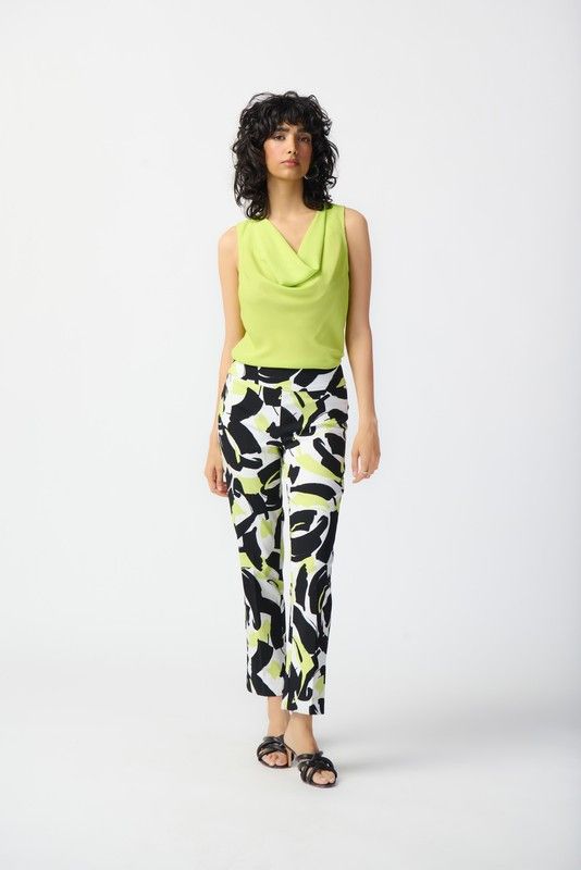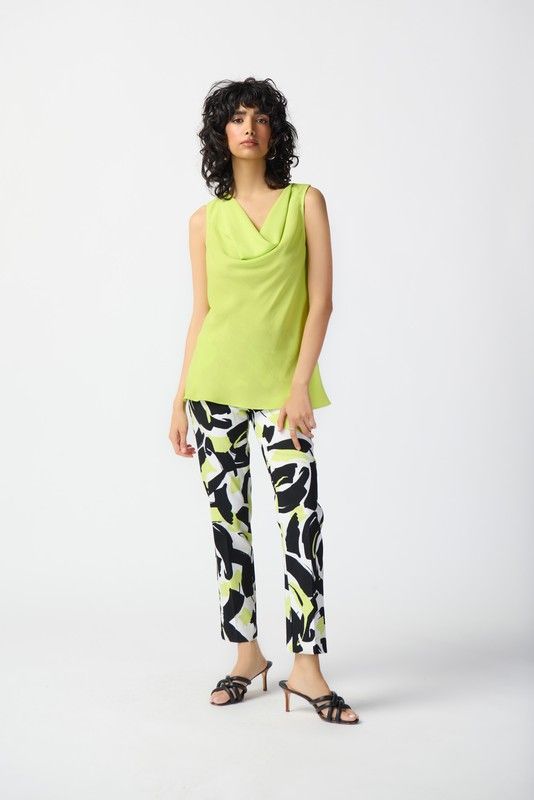 Top de Joseph Ribkoff sin mangas, con una delicada tela de gasa, corte recto y un escote fluido drapeado. Color: Lima.